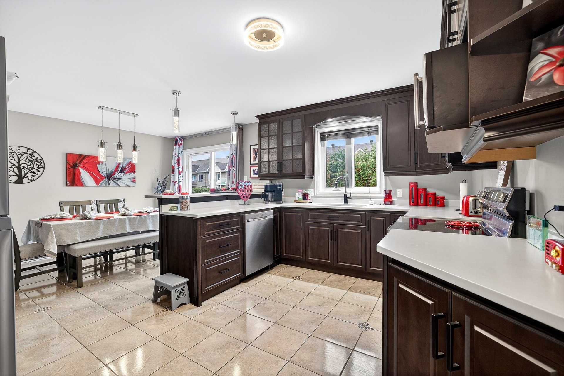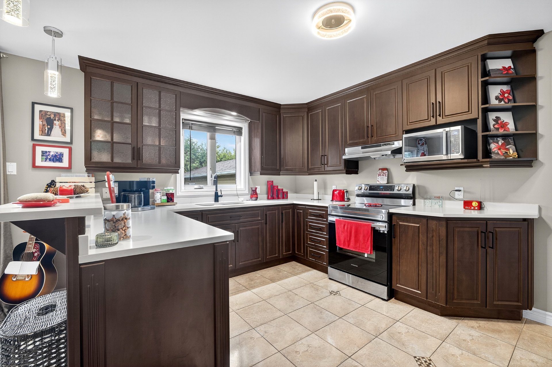 - Cuisine moderne avec des comptoirs en quartz et beaucoup