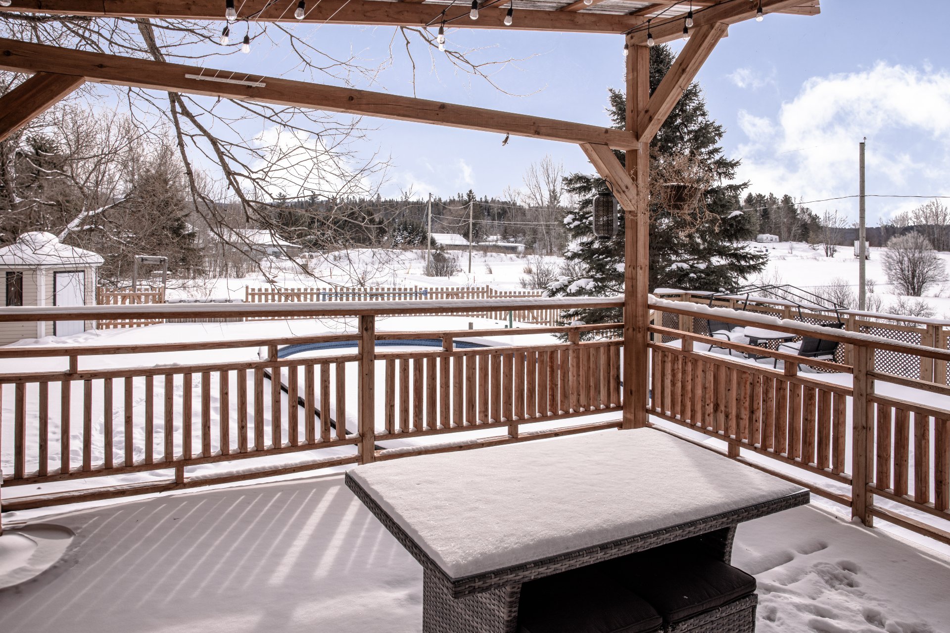 Piscine semi-creusée en cèdre traitée à l'imperméabilisant