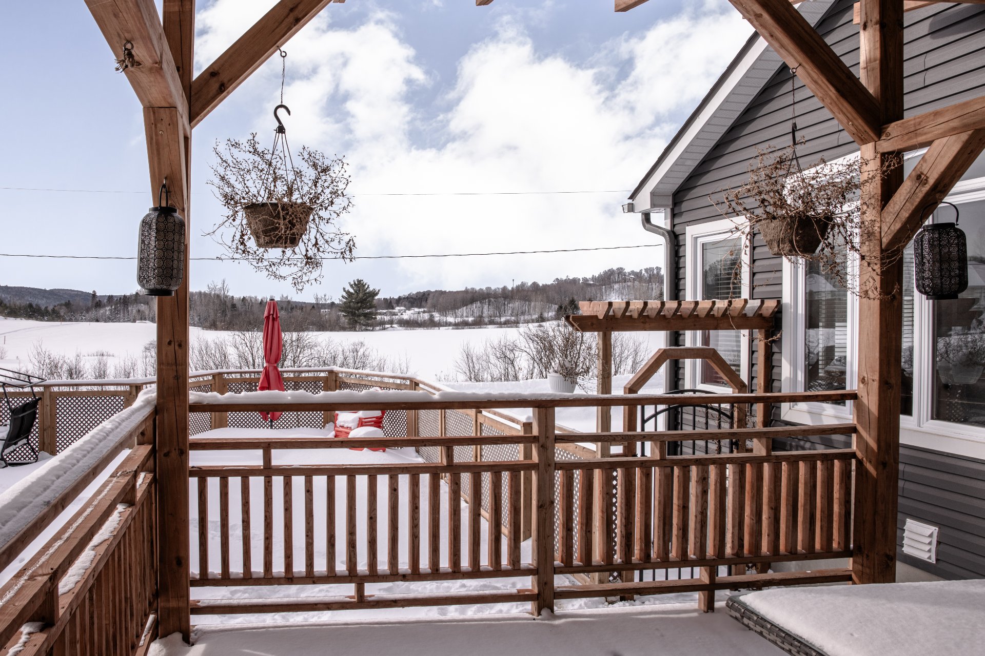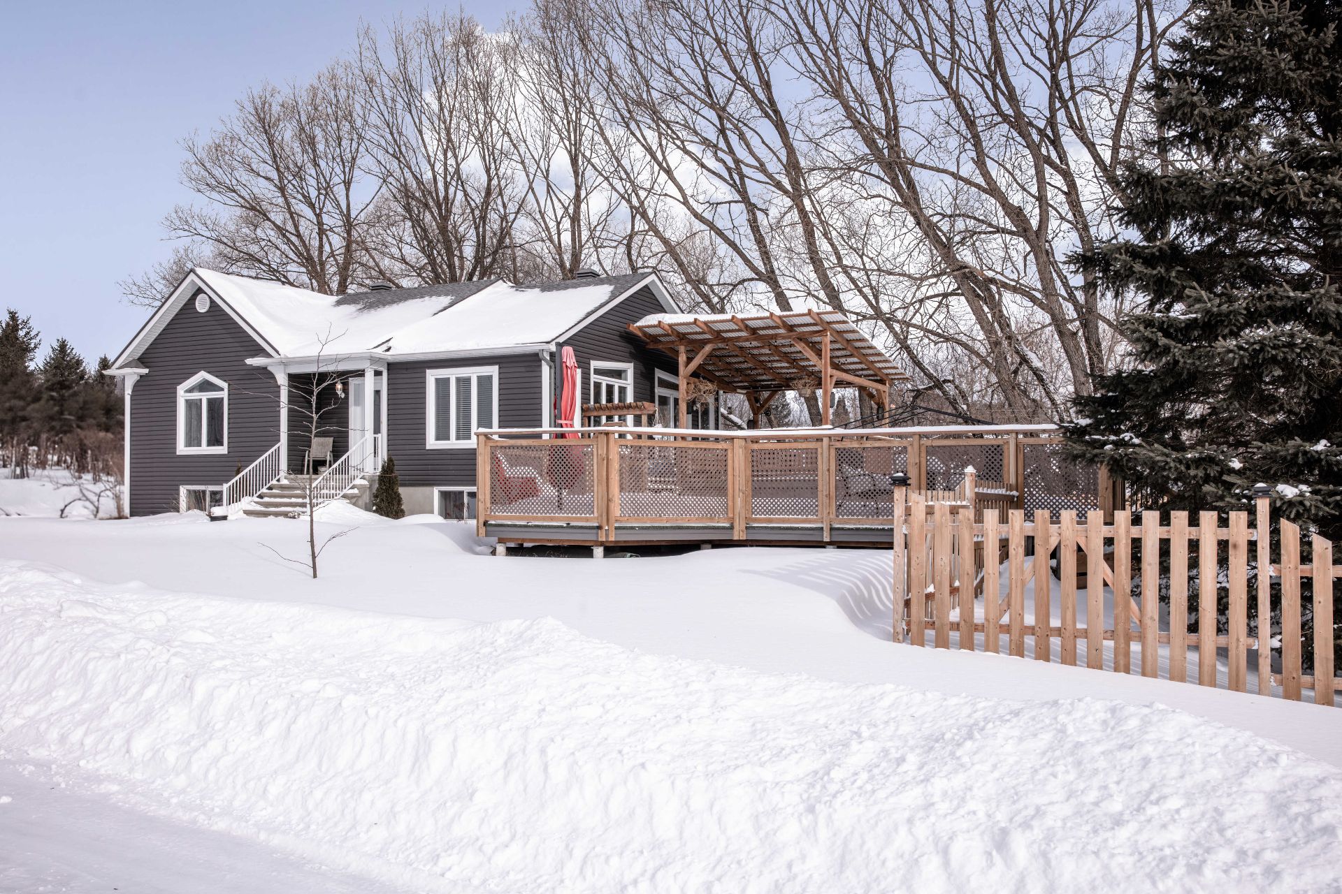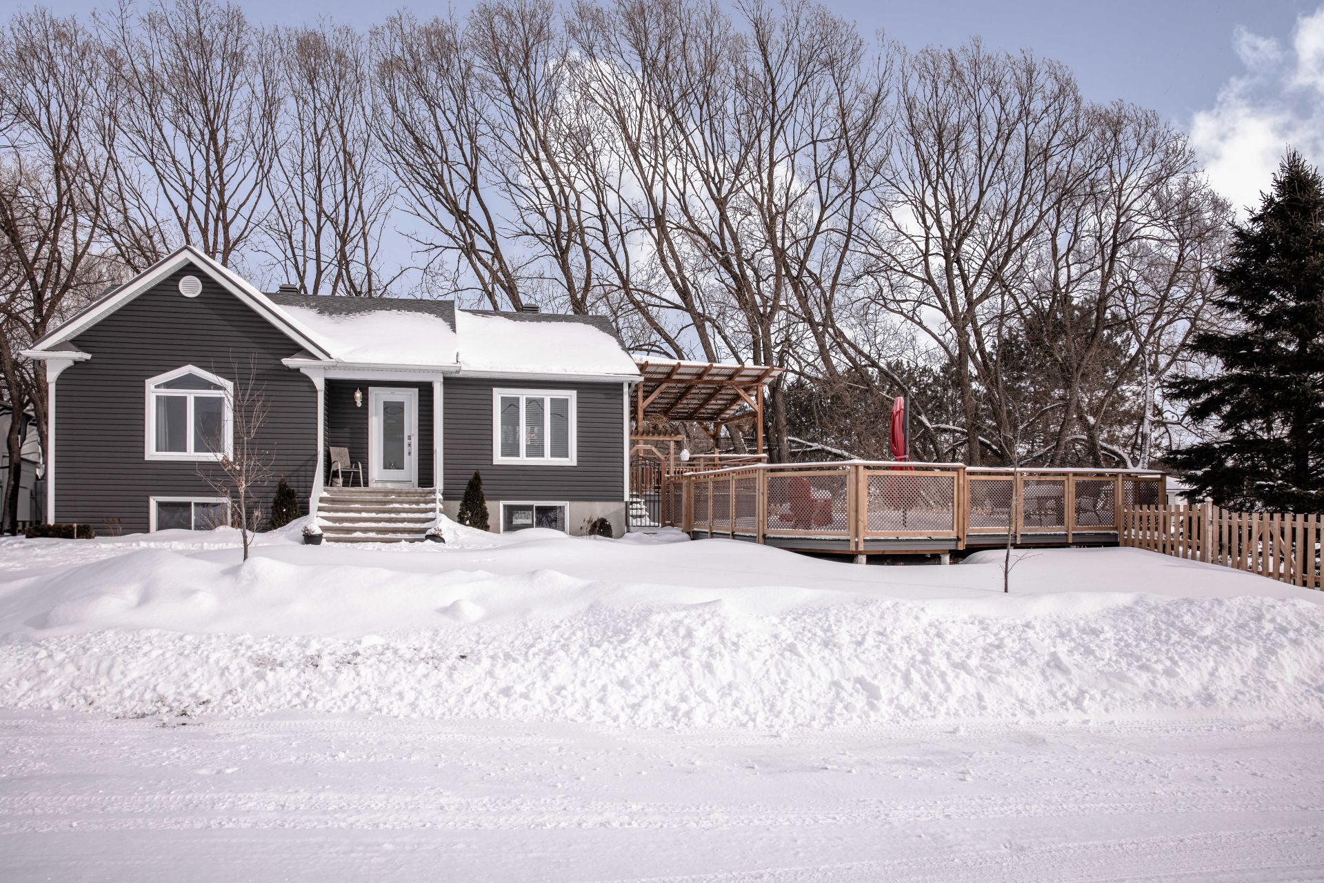 Grande terrasse en bois traité idéale pour recevoir famille