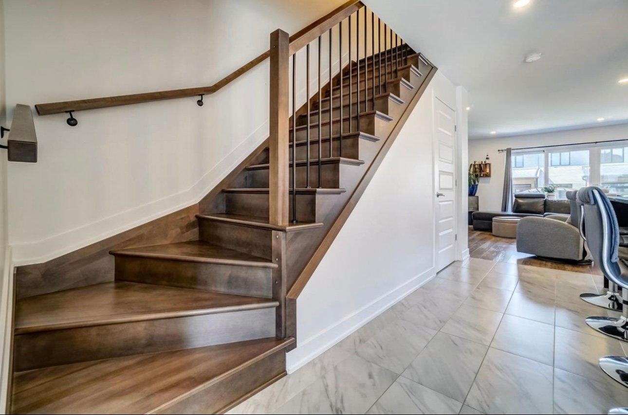 - Escalier en bois, aucun tapis pour un entretien facile